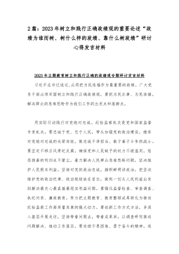 2篇:2023年树立和践行正确政绩观的重要论述“政绩为谁而树、树什么样的政绩、靠什么树政绩”研讨心得发言材料