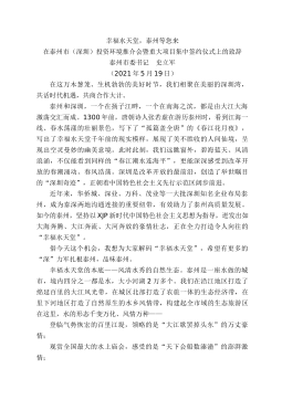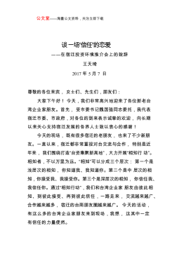 用心地用力地——在“睢宁——浙商携手共创事业行动会”上的致辞(2009年6月18日)王天琦尊敬的女士们、先生们、朋友们:大家好!首先,我代表中共睢宁县委、睢宁县人民政府和睢宁县130万睢宁人民向各位嘉宾表示热烈的欢迎!我们来到台州,不仅仅是为了台州的财富,还因为台州的文化。文化是推动一个地区发展的不竭动力。佛教中的一支——天台宗就起源于台州。天台宗有着很多很艰深的禅理,但说到底是“一念三千、一心三观”,概括起来,用一句明白话来讲,那就是用心、用力。天台国清寺有一个天台宗东传的故事。公元597年,智者大师在外出住石城寺时候圆寂。大师圆寂前交给大弟子灌顶一把金锁。他说:“国清寺建成后,你就用这把锁...