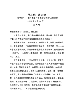 2009.06.18-用心地,用力地——王天琦在“睢宁——浙商携手共创事业行动会”上的致辞