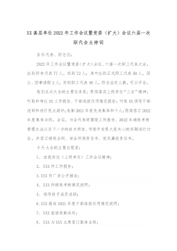 XX基层单位2022年工作会议暨党委(扩大)会议六届一次职代会主持词