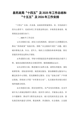 县民政局“十四五”及2025年工作总结和“十五五”及2026年工作安排