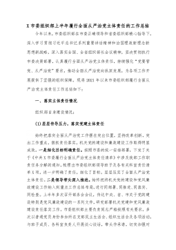 全面从严治党汇报(3篇)全面从严治党汇报1今年以来,我局认真贯彻落实党的十九大和十九届三中、四中、五中全会精神和市委、区党工委关于落实全面从严治党的一系列只是要求,牢牢把握党要管党、从严治党的政治责任,认真履行全面从严治党责任,不断强化党的建设和党的领导,切实履行一岗双责,持续纠正四风,坚持把管党治党与中心工作同部署、同落实、同检查、同考核,推动全面从严治党工作不断向纵深发展,为新区高质量发展提供了有力的思想组织保障。一、履行全面从严治党主体责任情况(一)提高政治站位,层层压实责任。坚持把落实主体责任作为推进全面从严治党的主攻方向,层层传导压力,严格落实责任,营造齐抓共管、能抓善管良好格局。一...