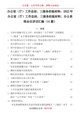 办公室(厅)工作总结、三服务经验材料:2022年办公室(厅)工作总结、三服务经验材料、办公系统会议讲话汇编(31篇)