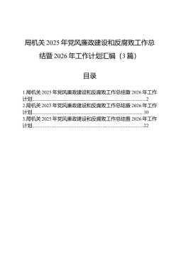 局机关2025年党风廉政建设和反腐败工作总结暨2026年工作计划汇编(3篇)20251205