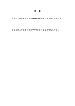目录公司党支部开展深入贯彻****规*精神学习教育情况自查报告党支部深入开展贯彻落实****规*精神学习教育的工作总结公司党支部开展深入贯彻****规*精神学习教育情况自查报告自开展深入贯彻****规*精神学习教育以来,公司党支部高度重视、精心组织,带领所属公司扎实推进相关工作,以作风建设凝聚发展合力,全力推动企业高质量发展。根据集团党委开展学习教育“回头看”工作要求,公司对照工作任务和要求,对学习教育开展情况进行了全面自查。现将情况报告如下:一、学习教育开展自查情况(一)压实责任链条。公司先后召开支委会、党员大会,专题研究部署学习教育工作,明确以“学、查、改”为核心环节,将学习教育与全年生产经营、改革发展目标任务深度融合。通过制定实施方案,细化目标任务、时间节点和责任分工,确保学习教育有序...