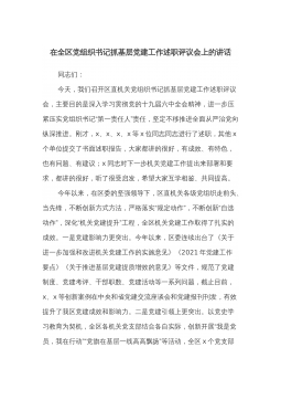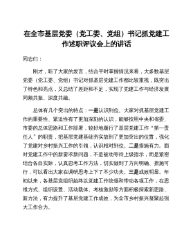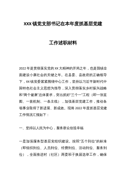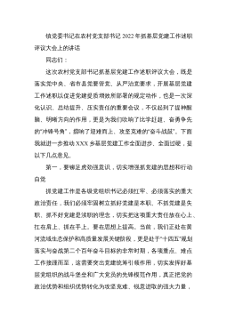 镇党委书记在农村党支部书记2022年抓基层党建工作述职评议大会上的讲话同志们:这次农村党支部书记抓基层党建工作述职评议大会,既是落实党中央、省市县党要管党、从严治党要求,开展基层党建工作述职以促进党建提质增效所部署的规定动作,也是一次深化认识、总结提升、压实责任的重要会议,不仅起到了提神醒脑、明晰方向的作用,更是为我们吹响了比学赶超、奋勇争先的“冲锋号角”,擂响了迎难而上、攻坚克难的“奋斗战鼓”。下面我就进一步推动XXX乡基层党建工作全面进步、全面过硬,提以下几点意见。第一,要铆足虎劲强意识,切实增强抓党建的思想和行动自觉抓党建工作是各级党组织书记必须扛牢、必须落实的重大政治责任,我们必须牢固...