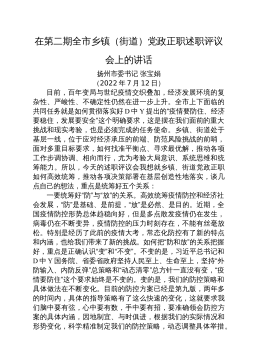在第二期全市乡镇(街道)党政正职述职评议会上的讲话扬州市委书记张宝娟(2022年7月12日)目前,百年变局与世纪疫情交织叠加,经济发展环境的复杂性、严峻性、不确定性仍然在进一步上升。全市上下面临的共同任务就是如何贯彻落实好D中Y提出的“疫情要防住、经济要稳住,发展要安全”这个明确要求,这是摆在我们面前的重大挑战和现实考验,也是必须完成的任务使命。乡镇、街道处于基层一线,位于应对经济承压的前端、防范风险挑战的前哨,面对多重目标要求,如何找准平衡点、寻求最优解,推动各项工作步调协调、相向而行,尤为考验大局意识、系统思维和统筹能力。所以,今天的述职评议会我想就乡镇、街道党政正职如何高效统筹,推动各项...