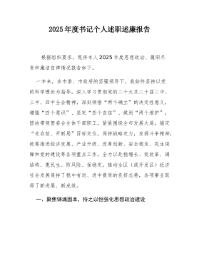 市住房和城乡建设局党组书记、局长2025年度述职述廉报告根据组织要求,现将本人2025年度履行岗位职责、落实党风廉政建设主体责任及个人廉洁自律情况报告如下。2025年,是全面完成“十四五”规划目标任务的关键之年,也是我市住建事业深化改革、攻坚克难、提质增效的重要一年。一年来,在市委、市政府的坚强领导下,我始终坚持以高度的政治责任感和历史使命感,团结带领局领导班子及全体干部职工,紧紧围绕全市中心工作和发展大局,锚定“住有所居、居有所安、城有所美”的目标,统筹推进住房和城乡建设领域改革发展稳定各项任务,全力推动全面从严治党向纵深发展,全市住建事业呈现出稳中有进、持续向好的发展态势。下面,从三个方面进行述职述廉。一、筑牢政治忠诚“压舱石”,把稳理想信念“方向盘”,在深学笃行中彰显住建担当始终将政治...