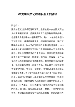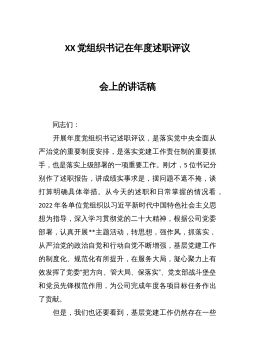 XX书记在在2022年度基层党组织书记落实管党治党主体责任述职评议会议上的主持讲话同志们:根据中央、XX省党委和XX市委有关精神和部署要求,今天在这里召开2022年度XX区基层党组织书记落实管党治党主体责任述职评议会议。这是区委深入学习贯彻习近平新时代中国特色社会主义思想,全面落实新时代党的建设总要求和党的组织路线,推动全面从严治党向纵深发展的一项重要举措。今年的述职评议内容主要是:履行基层党建工作、党风廉政建设、意识形态工作主体责任情况。市纪委、市委组织部高度重视这次述职评议会,市纪委×××同志,市委党建办主任XX同志专程前来指导,让我们以热烈的掌声欢迎他们的到来!今天的会议有三项议程:一是...