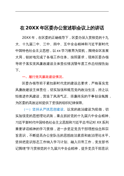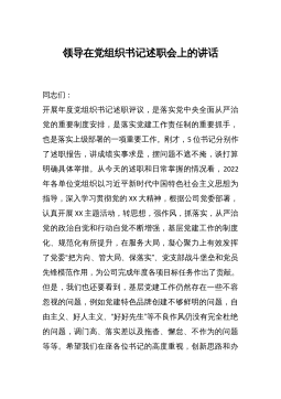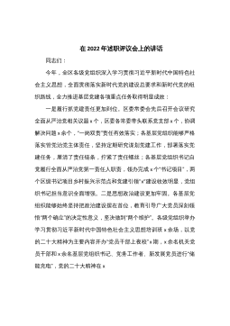 书记在在2022年度基层党组织书记落实管党治党主体责任述职评议会议上的主持讲话同志们:根据中央、XX省党委和XX市委有关精神和部署要求,今天在这里召开2022年度XX区基层党组织书记落实管党治党主体责任述职评议会议。这是区委深入学习贯彻习近平新时代中国特色社会主义思想,全面落实新时代党的建设总要求和党的组织路线,推动全面从严治党向纵深发展的一项重要举措。今年的述职评议内容主要是:履行基层党建工作、党风廉政建设、意识形态工作主体责任情况。市纪委、市委组织部高度重视这次述职评议会,市纪委×××同志,市委党建办主任XX同志专程前来指导,让我们以热烈的掌声欢迎他们的到来!今天的会议有三项议程:一是5个...