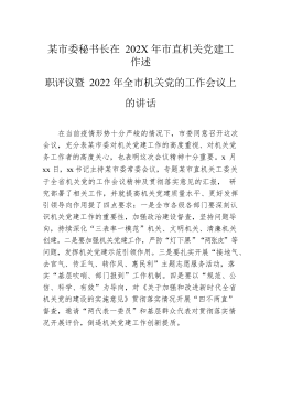市委秘书长在202X年市直机关党建工作述职评议暨2022年全市机关党的工作会议上的讲话
