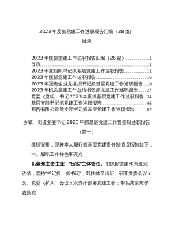 2023年度抓基层党建工作述职报告汇编(基层党支部书记、国有企业公司、党组、乡镇街道、社区、市等、党工委书记)(28篇)