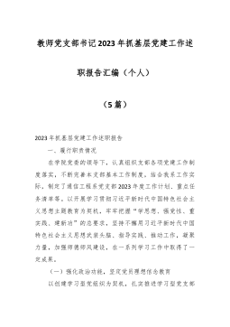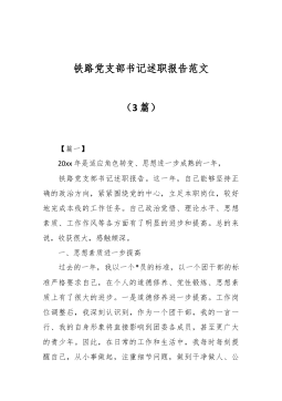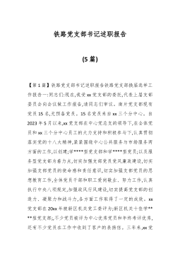 铁路党支部书记述职报告(5篇)【第1篇】铁路党支部书记述职报告铁路党支部换届选举工作报告一:同志们:现在,我受xx党支部的委托,代表上届支部委员会向会议做工作报告,请同志们审议。南片党支部现有党员15名,无预备党员。15名党员来自xx三个分中心。自2023年5月以来,xx党支部在中心党总支的领导下,在全体党员和xx三个分中心员工的大力支持和积极参与下,认真贯彻落实党的十八大精神,紧紧围绕中心公共服务与市场服务两方面的工作,以创建;学****型党支部和学****型党员;以及服务型党支部为着力点,切实加强支部党员党风廉政建设,切实加强支部党员的使命感和责任意识,切实加强支部党员的思想教育工作,全体...