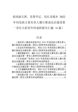 政协副主席、党委书记、局长及镇乡2022年局党政主要负责人履行推进法治建设第一责任人职责年终述职报告汇编(6篇)