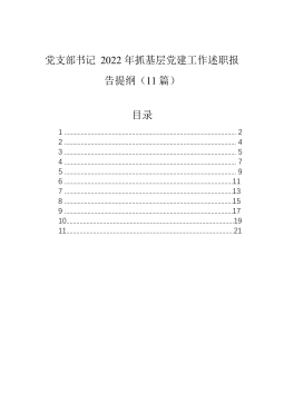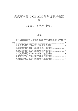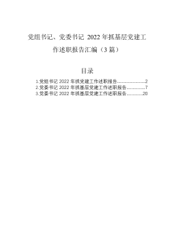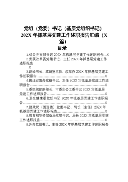 党组(党委)书记(基层党组织书记)202X年抓基层党建工作述职报告汇编(X篇)目录1.机关党支部书记202X年抓基层党建工作述职报告...X2.发展改革委党组书记、主任202X年抓基层党建工作述职报告X3.副秘书长、政研室主任、改革办202X年抓基层党建工作述职报告...............................................................................X4.搬迁安置办党组书记、主任202X年抓基层党建工作述职报告............................................................