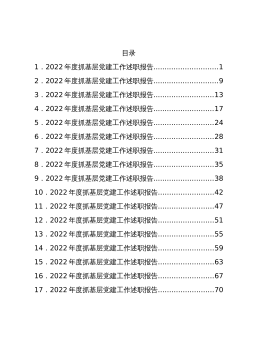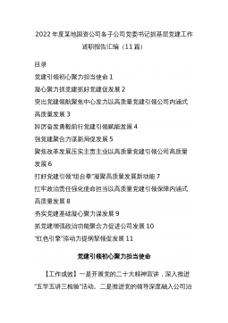 2022年度某地国资公司各子公司党委书记抓基层党建工作述职报告汇编(11篇)目录党建引领初心聚力担当使命1凝心聚力抓党建抓好党建促发展2突出党建领航聚焦中心发力以高质量党建引领公司内涵式高质量发展3踔厉奋发勇毅前行党建引领赋能发展4强党建聚合力谋新局促发展5聚焦改革发展压实主责主业以高质量党建引领公司高质量发展6打好党建引领“组合拳”凝聚高质量发展新动能7扛牢政治责任强化使命担当以高质量党建引领保障内涵式高质量发展8夯实党建基础凝心聚力谋发展9抓党建增强政治功能聚合力促进公司发展10“红色引擎”添动力提纲挈领促发展11党建引领初心聚力担当使命【工作成效】一是开展党的二十大精神宣讲,深入推进“五...