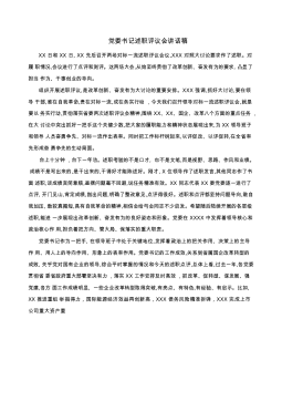 党委书记述职评议会讲话稿XX日和XX日,XX先后召开两场对标一流述职评议会议,XXX对照大讨论要求作了述职。对履职情况,会议进行了点评和测评。这两场大会,从始至终贯彻了改革创新、奋发有为的要求,凸显了担当作为、干事创业的导向。组织开展述职评议,是改革创新、奋发有为大讨论的重要安排。XXX强调,抓好大讨论,要在领导干部,难在自我革命,贵在对标一流,成在务实行动,今天我们召开领导对标一流述职评议会,就是要以务实行动,贯彻落实省委两次述职评议会精神,围绕XX、XX、国企、改革八个方面的重点任务,在大讨论中突出抓好一把手这个关键少数,把大家的履职能力和精神状态展现出来,为XX领导班子和领导人员奋勇争先...