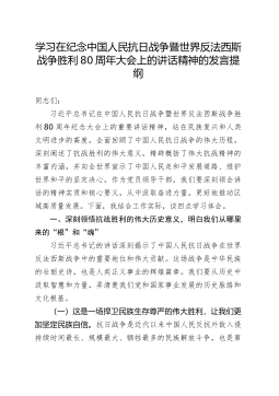 学习在纪念中国人民抗日战争暨世界反法西斯战争胜利80周年大会上的讲话精神的发言提纲202509