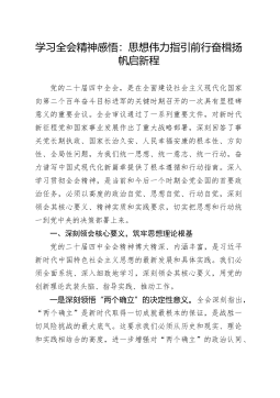 学习全会精神感悟:思想伟力指引前行奋楫扬帆启新程党的二十届四中全会,是在全面建设社会主义现代化国家向第二个百年奋斗目标进军的关键时期召开的一次具有里程碑意义的重要会议。全会审议通过了一系列重要文件,对新时代新征程党和国家事业发展作出了重大战略部署,深刻回答了事关党长期执政、国家长治久安、人民幸福安康的根本性、方向性、全局性问题,为我们统一思想、统一意志、统一行动,奋力谱写中国式现代化新篇章提供了根本遵循和行动指南。深入学习贯彻全会精神,是当前和今后一个时期全党全国的首要政治任务,必须以高度的政治自觉、思想自觉、行动自觉,深刻领会其核心要义、精神实质和实践要求,切实把思想和行动统一到党中央的决策部署上来。一、深刻领会核心要义,筑牢思想理论根基党的二十届四中全会精神博大精深、内涵丰富,是习近平新...