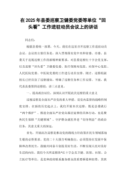 在2025年县委巡察卫健委党委等单位“回头看”工作进驻动员会议上的讲话