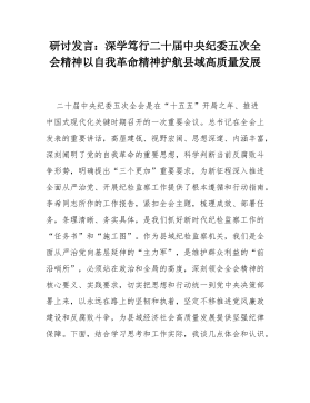研讨发言:深学笃行二十届中央纪委五次全会精神以自我革命精神护航县域高质量发展