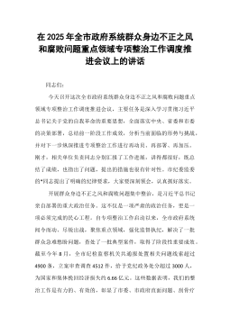 在2025年全市政府系统群众身边不正之风和腐败问题重点领域专项整治工作调度推进会议上的讲话