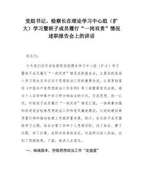 党组书记、检察长在理论学习中心组(扩大)学习暨班子成员履行“一岗双责”情况述职报告会上的讲话
