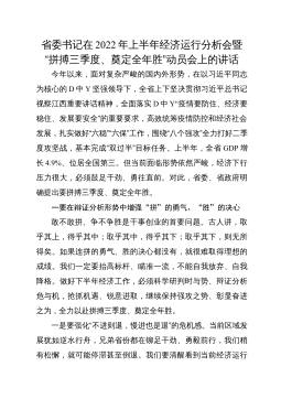 省委书记在2022年上半年经济运行分析会暨“拼搏三季度、奠定全年胜”动员会上的讲话