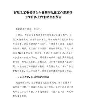 街道党工委书记在全县基层党建工作观摩评比擂台赛上的末位表态发言