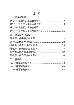 最全!“八一”建军节座谈会讲话、退役军人代表发言、慰问信汇编(15篇2.3万字,仅供学习,请勿抄袭)