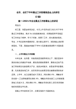 (2篇)在市、全区下半年重点工作部署推进会上的讲话