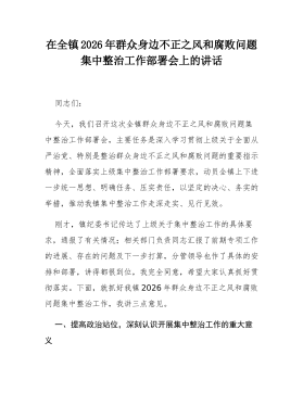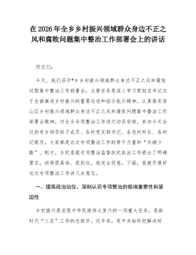 在2026年全乡乡村振兴领域群众身边不正之风和腐败问题集中整治工作部署会上的讲话