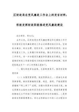 区财政局在党风廉政工作会上的发言材料:积极发挥财政职能 推进党风廉政建设