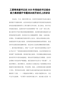 工委常务副书记在2025年党组织书记综合能力素质提升专题培训班开班式上的讲话 同志们:今天,我们齐聚于此,共同开启党组织书记综合能力素质提升专题培训班。此次培训是在全面推进中国式现代化新征程、深化党的建设新的伟大工程关键节点举办的,意义深远。各位书记身处基层前沿,是落实党中央决策部署的“第一公里”责任主体,能力素养关乎党在基层的执政根基稳固、高质量发展实践成效与治理体系现代化进程。培训旨在为大家赋能增智,锻造一支政治强、本领高、作风硬的基层党组织带头人队伍。我们必须深刻认识到,加强党组织书记能力建设,是巩固党的执政基础的必然要求,是适应时代发展需求的战略举措,更是回应人民群众期盼的根本保障。一、提升政治领导能力,淬炼“主心骨”政治本色深刻领会习近平总书记关于“党的政治建设是党的根本性建设,决...
