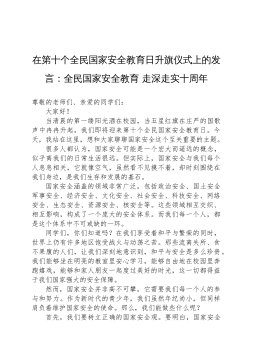 在第十个全民国家安全教育日升旗仪式上的发言:全民国家安全教育 走深走实十周年