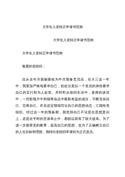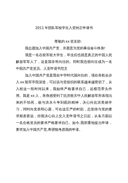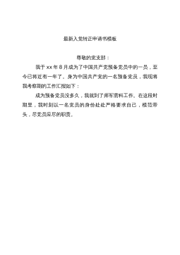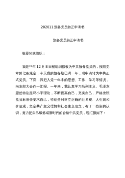 11月份最新入党转正申请书例文11月份最新入党转正申请书例文,关键词是转正申请,11月份最新,尊敬的党支部:我于xx年8月成为了中国共产党预备党员中的一员,至今已将近有一年了。身为中国共产党的一名预备党员,我现将我考察期的工作汇报如下:成为预备党员没多久,我就到了师军需科工作。在这段时期里,我时刻以一名党员的身份处处严格要求自己,模范带头,尽党员应尽的职责。在思想上认真学习马列主义、毛泽东思想以及邓小平理论来武装自己的头脑,认真落实江主席"五句话总要求"和"三个代表"的科学内涵,自身实践,时刻牢记"全心全意为人民服务"的宗旨。作为一名后勤保管人员,就是一名服务者,要为基层服务,通过这次“三讲”...