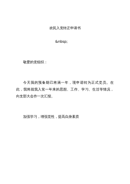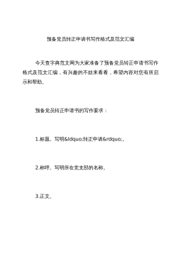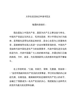 11月份最新入党转正申请书例文11月份最新入党转正申请书例文,关键词是转正申请,11月份最新,尊敬的党支部:我于xx年8月成为了中国共产党预备党员中的一员,至今已将近有一年了。身为中国共产党的一名预备党员,我现将我考察期的工作汇报如下:成为预备党员没多久,我就到了师军需科工作。在这段时期里,我时刻以一名党员的身份处处严格要求自己,模范带头,尽党员应尽的职责。在思想上认真学习马列主义、毛泽东思想以及邓小平理论来武装自己的头脑,认真落实江主席"五句话总要求"和"三个代表"的科学内涵,自身实践,时刻牢记"全心全意为人民服务"的宗旨。作为一名后勤保管人员,就是一名服务者,要为基层服务,通过这次“三讲”...