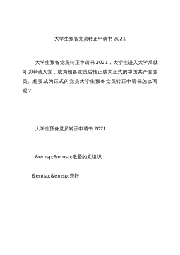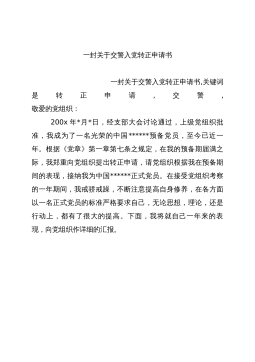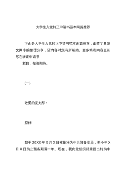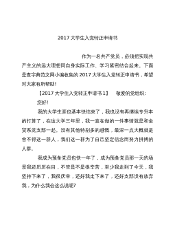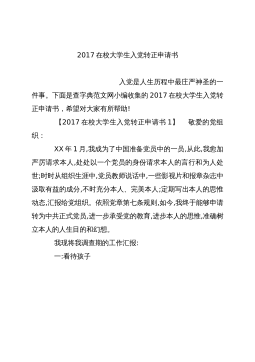 2017在校大学生入党转正申请书入党是人生历程中最庄严神圣的一件事。下面是查字典范文网小编收集的2017在校大学生入党转正申请书,希望对大家有所帮助!【2017在校大学生入党转正申请书1】敬爱的党组织:XX年1月,我成为了中国准备党员中的一员,从此,我愈加严厉请求本人,处处以一个党员的身份请求本人的言行和为人处世;时时从组织生涯中,党员教师说话中,一些影视片和报章杂志中汲取有益的成分,不时充分本人、完美本人;定期写出本人的思惟动态,汇报给党组织。依照党章第七条规则,如今,我终于能够申请转为中共正式党员,进一步承受党的教育,进步本人的思惟,准确树立本人的人生目的和幻想。我现将我调查期的工作汇报:...