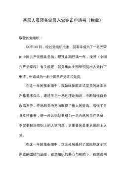 2023年预备党员转正申请书敬爱的党组织:您好!2022年1月1日,经党支部批准,我实现了梦寐以求的愿望,成为一名光荣的中国共产党预备党员。此刻,我的预备期已满一年,根据党章第七条规定,我郑重的向党组织提出申请,申请转为中国共产党正式党员。一年来,在党组织的带领下,在支部党员的悉心帮助下,经过深入的理论知识学习和组织活动,我的政治、思想水平都有了很大提高,今天,我郑重在此向党组织申请转为中共正式党员。有人曾说,一个人如果没有追求与理想,就会变得碌碌无为;没有信念,就会缺少人生航线上的航标,便会迷失方向或者迷失自我,难以达到理想的彼岸,更不会完美发出自我的光和热,激发出人生的意义和生命的价值。因...