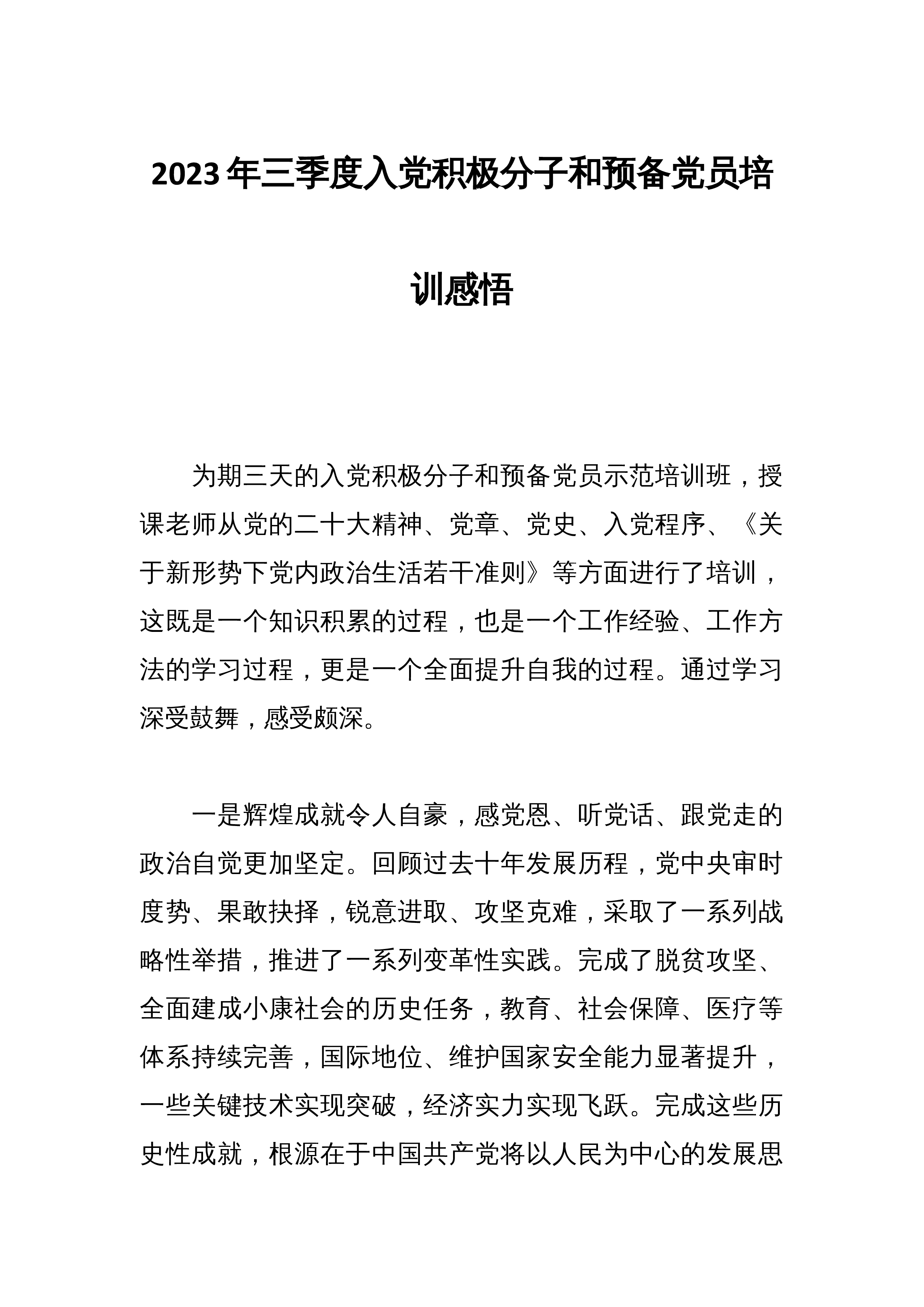 参加2023年三季度入党积极分子和党员发展对象培训班感悟(心得体会)