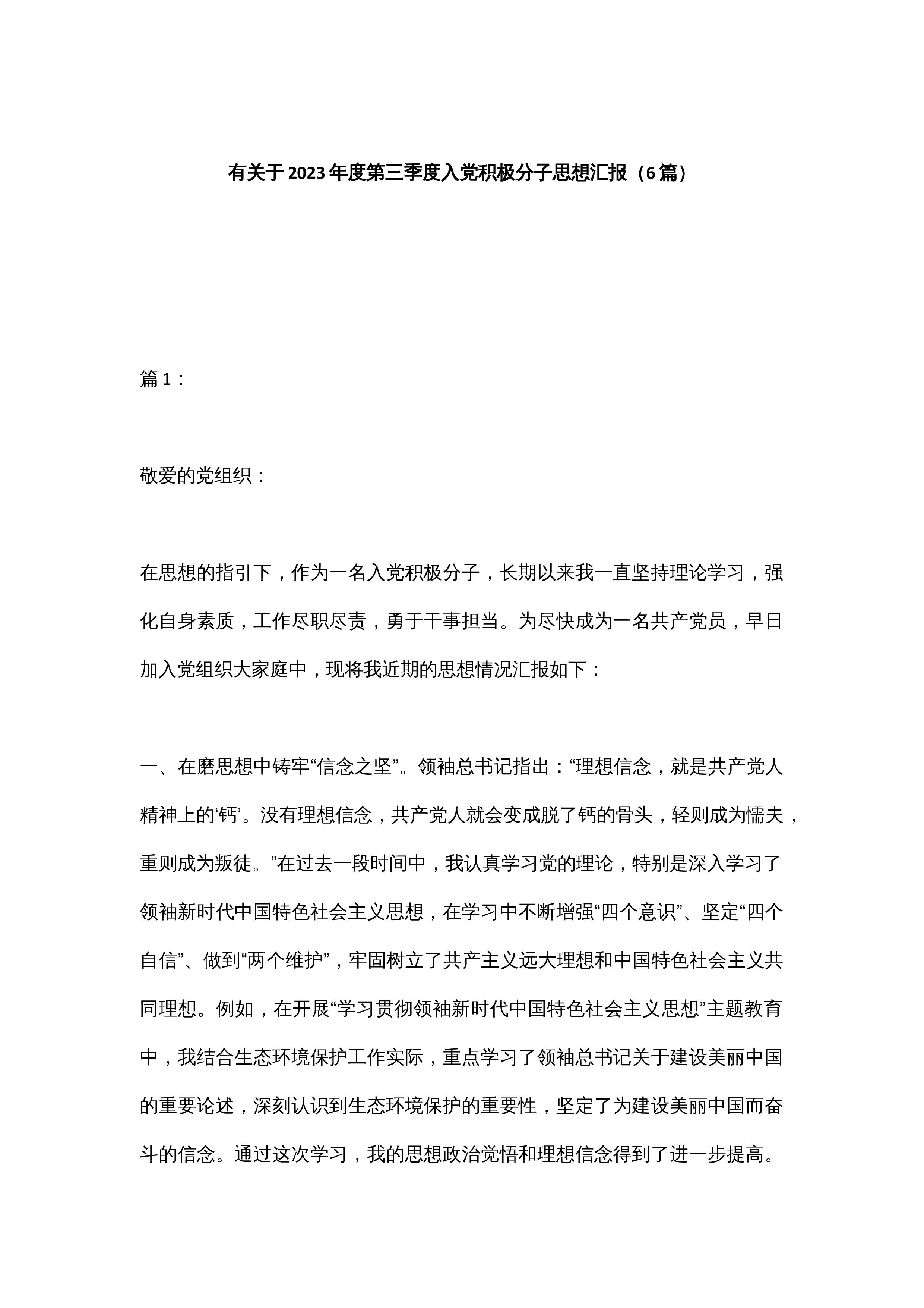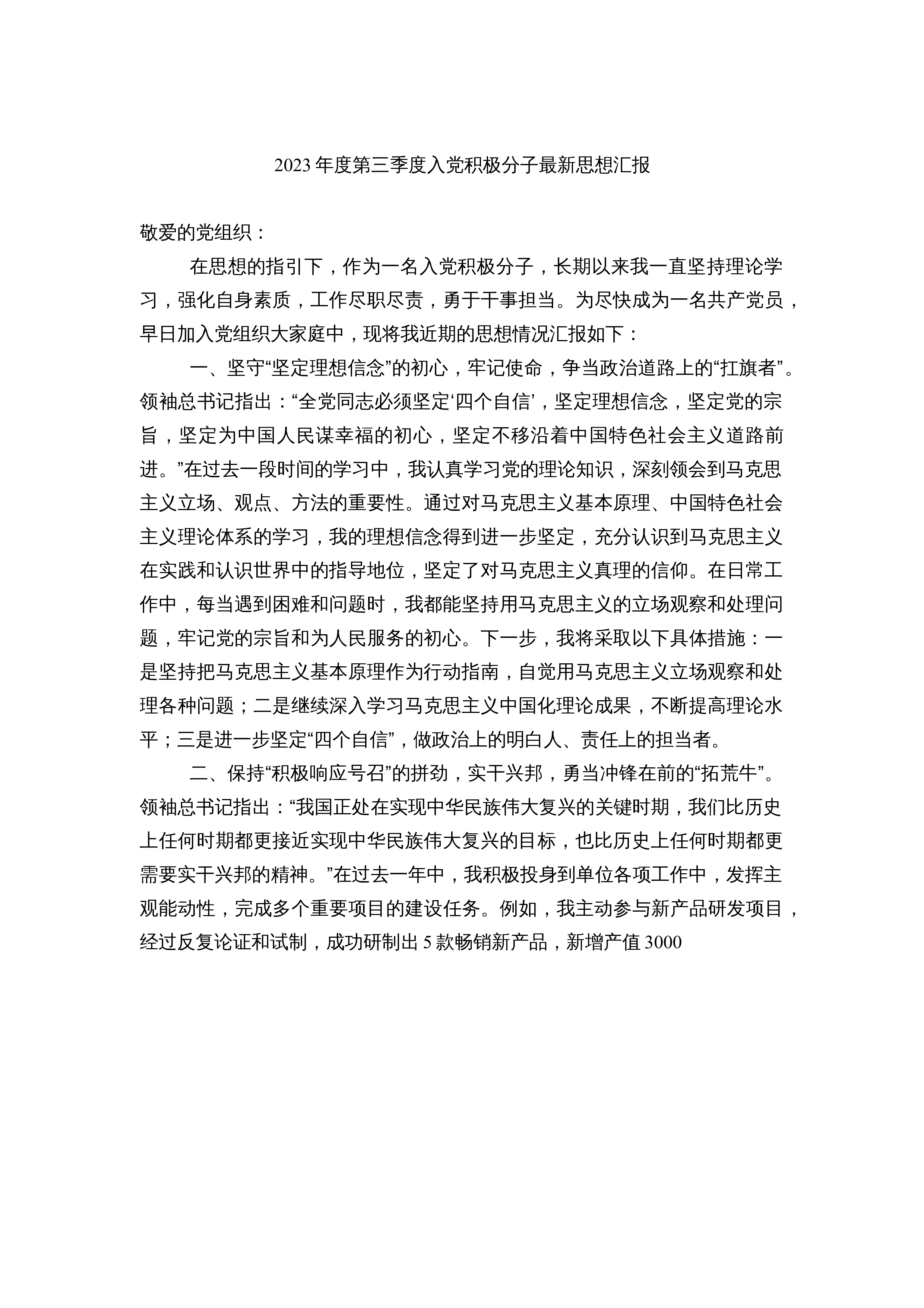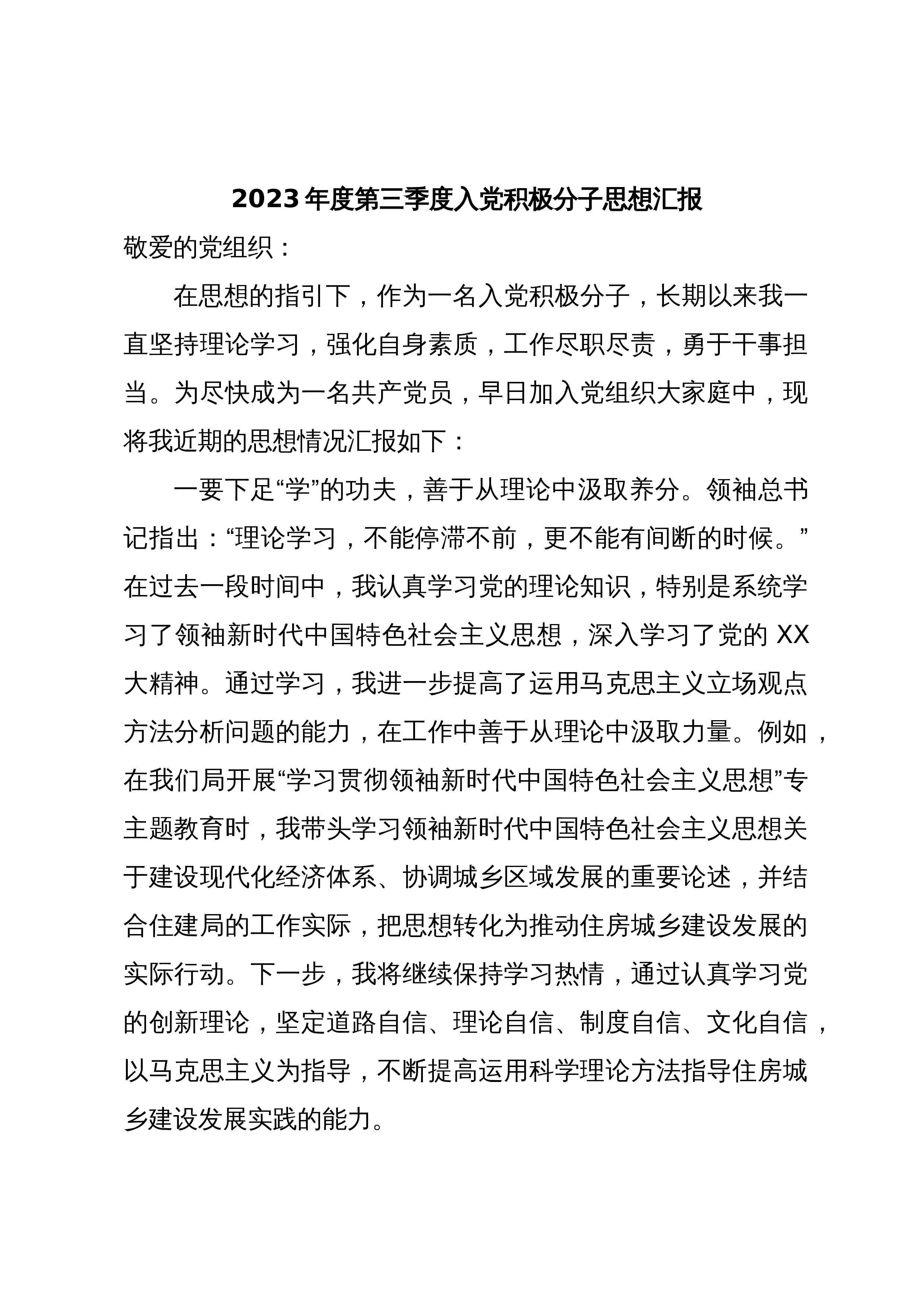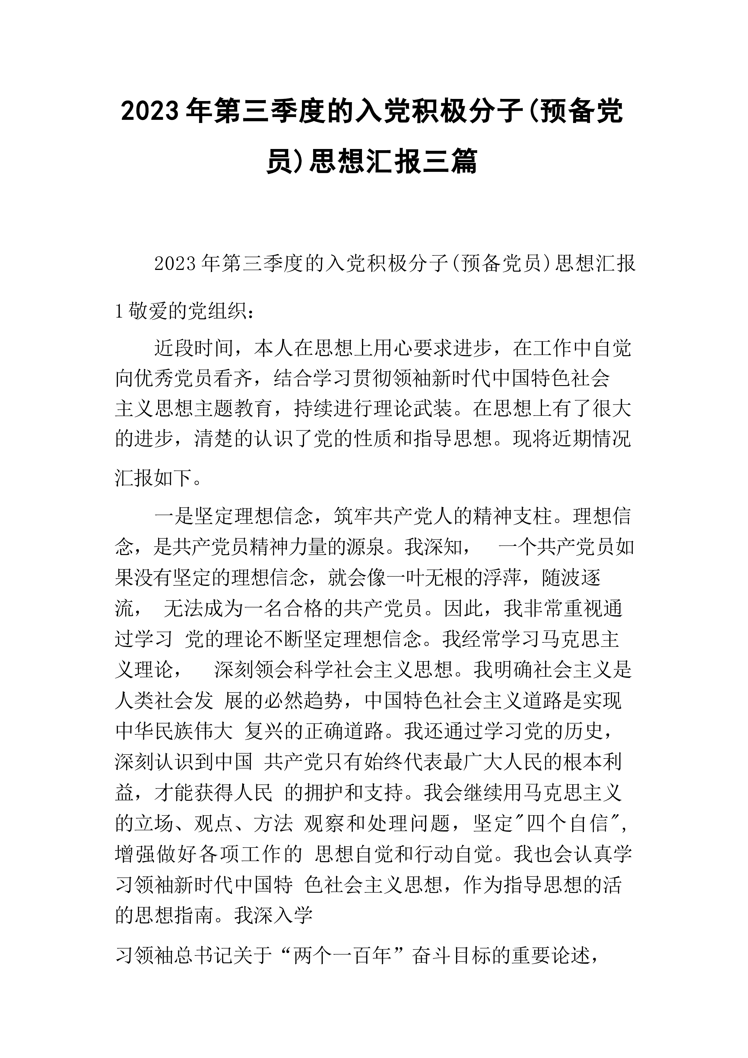 2023年第三季度的入党积极分子(预备党员)思想汇报三篇