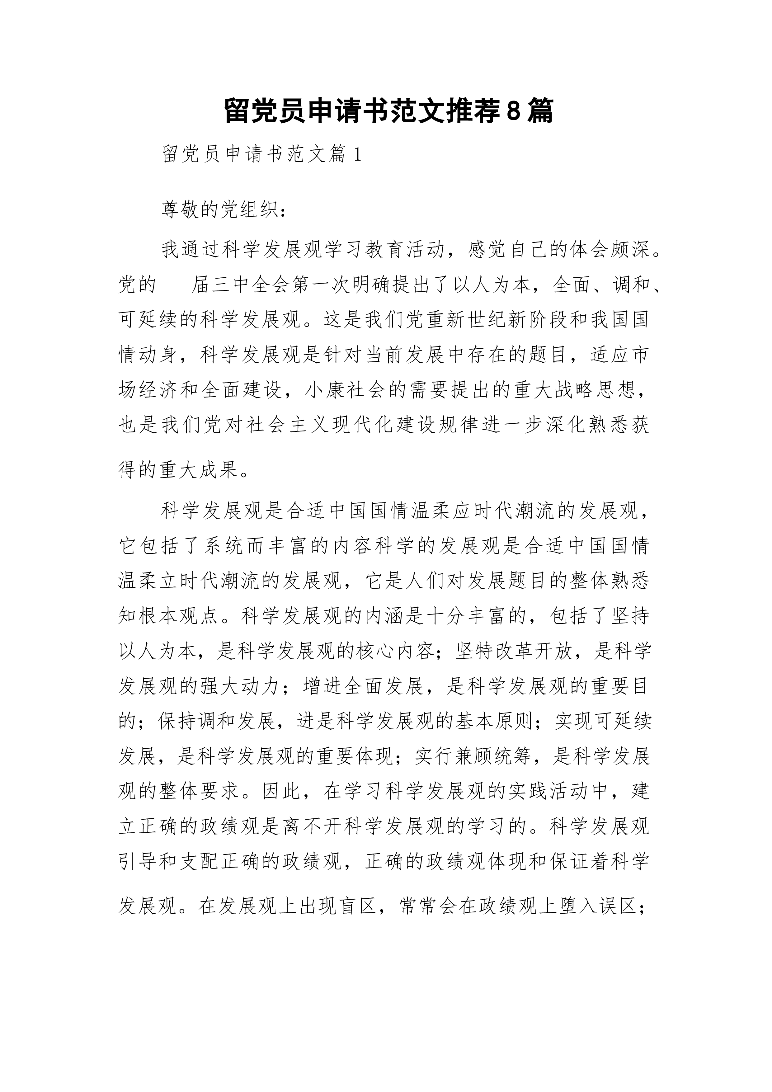 留党员申请书范文推荐8篇与留党员申请书范文6篇