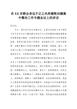 在XX区委农村工作领导小组(扩大)会议暨农业农村领域群众身边不正之风和腐败问题集中整治工作推进会上的讲话同志们:今天,我们召开区委农村工作领导小组(扩大)会议,同时套开全区农业农村领域群众身边不正之风和腐败问题集中整治工作推进会。会议的主要任务是,深入学习贯彻习近平总书记关于"三农"工作的重要论述,全面落实中央、省委、市委农村工作会议的决策部署,总结回顾2025年全区"三农"工作,分析研判当前面临的新形势新挑战,并对2026年的重点任务,特别是集中整治专项工作,进行全面动员和系统安排。刚才,会议传达了上级相关会议和文件精神,听取了有关工作情况的汇报,审议了今年的实施意见,相关同志也对具体工作进行了部署,讲得都很好,我都同意,希望大家认真领会,抓好贯彻落实。下面,我讲几点意见。一、回顾既往成就...