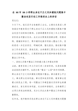 在 XX 市 XX 小学群众身边不正之风和腐败问题集中整治攻坚行动工作推进会上的讲话