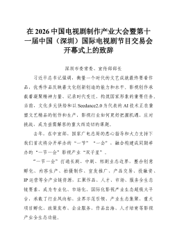 在2026中国电视剧制作产业大会暨第十一届中国(深圳)国际电视剧节目交易会开幕式上的致辞