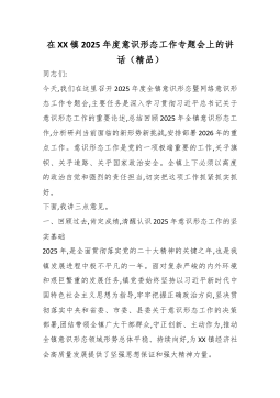 在XX镇2025年度意识形态工作专题会上的讲话(精品)