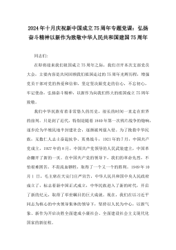 2024年十月庆祝新中国成立75周年专题党课:弘扬奋斗精神以新作为致敬中华人民共和国建国75周年