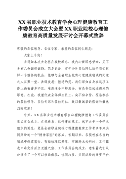 XX省职业技术教育学会心理健康教育工作委员会成立大会暨XX职业院校心理健康教育高质量发展研讨会开幕式致辞
