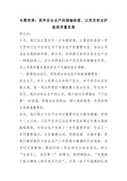 党课讲稿:以高质量机关党建促进高质量发展,奋力推动中国式现代化实践不断取得新成效同志们:党的十八大以来,习近平总书记站在党和国家事业发展全局的战略高度,就机关党的建设作出一系列重要论述,系统回答了新时代机关党建为什么抓、抓什么、怎么抓、谁来抓等一系列重大理论和实践问题,为加强新时代机关党的建设指明了前进方向、提供了根本遵循。党的二十届四中全会强调,管党治党越有效,经济社会发展的保障就越有力。省委也对加强全省机关党的建设、以高质量党建引领高质量发展提出了明确要求、作出了系统部署。全市各级机关和广大党员干部要深入学习贯彻习近平总书记关于党的建设的重要思想、关于党的自我革命的重要思想,全面落实党中央决策部署和省委工作要求,站位全局抓党建、抓好党建促发展,坚定扛起省会“走在前、挑大梁、作示范”的使命...