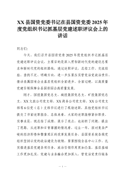 XX市国资委党委书记、主任在2025年度党组织书记抓基层党建工作述职评议、落实党风廉政建设主体责任述责述廉评议会上的讲话